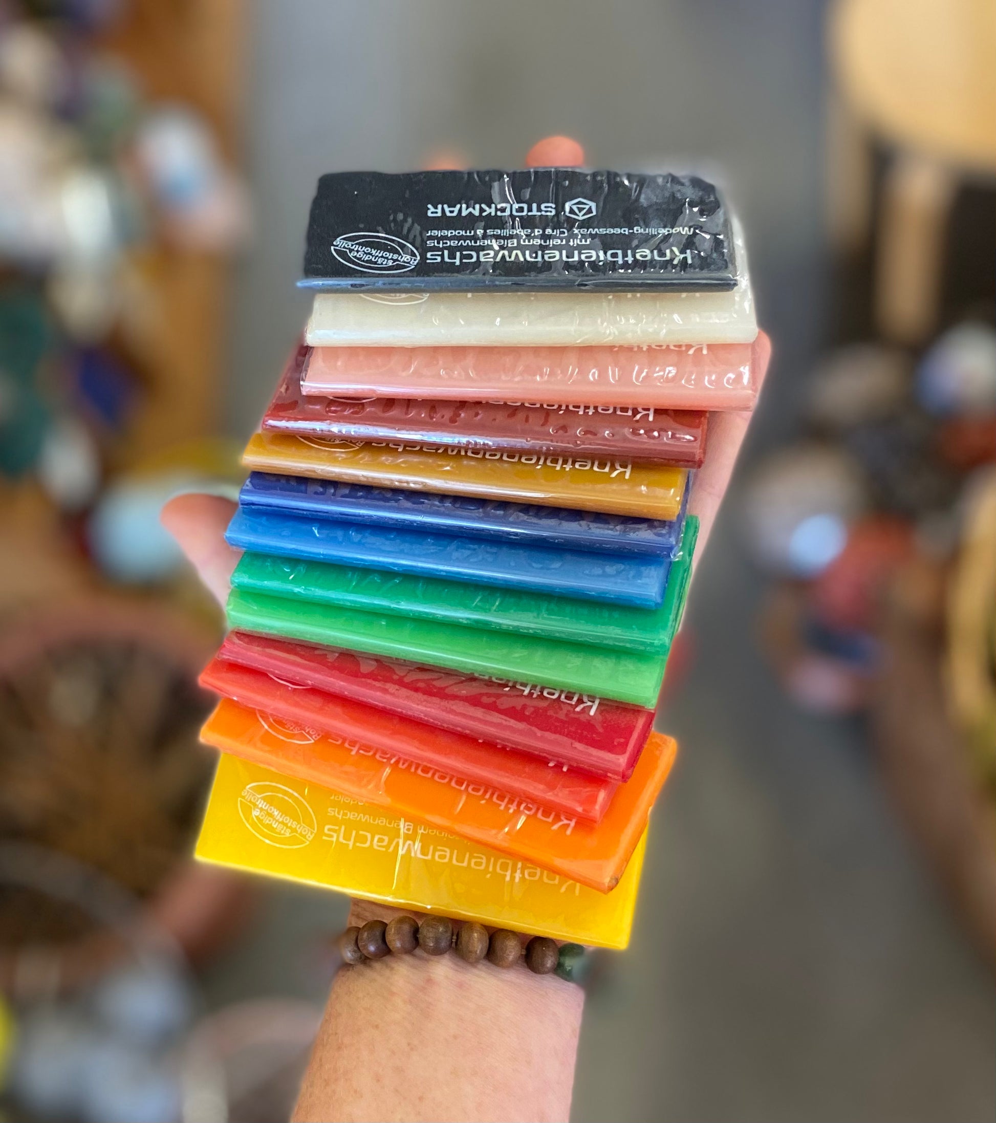 STOCKMAR modelling beeswax is both versatile and clean. Initially hard, its consistency changes in the hands' warmth, becoming malleable and allowing all conceivable shapes to be made. The high proportion of beeswax gives the modeling beeswax a translucent, luminous appearance.