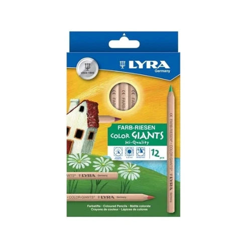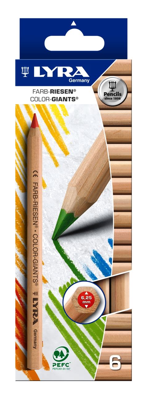 LYRA Color-Giants and Ferby Unlacquered Pencils are large-diameter coloured pencils which last 3 times longer than regular coloured pencils. Their large hexagon or triangular shape contains highly pigmented 6.25-millimetre coloured cores.